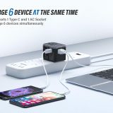 Equipped with a USB-C port and 4 USB-A ports, this universal power adapter allows you to charge multiple devices simultaneously, from smartphones and tablets to cameras and laptops. The built-in smart IC chip automatically identifies your device’s power requirements for fast and efficient charging.